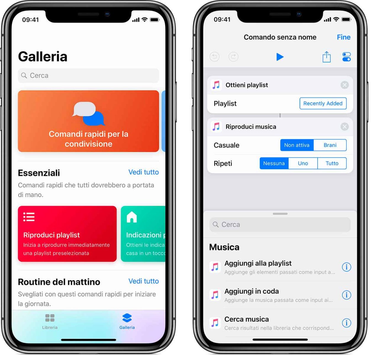 È possibile combinare più attività su varie app e creare automazioni delle attività. Una volta aggiunti i comandi rapidi dall’app Galleria o dopo aver creato i propri, è possibile lanciarli in nell’app, dalla vista Oggi di iOS, dalla schermata Home di iOS o chiedendo a Siri.