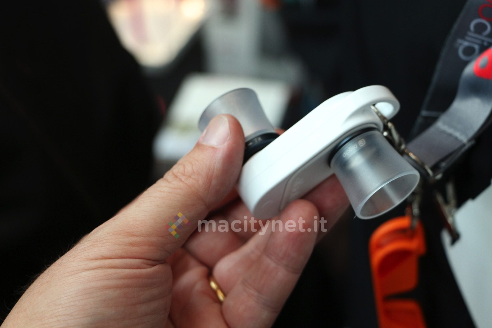 Il kit di base per tutte le riprese permette di essere montato indifferentemente sulla camera frontale o su quella presente sul retro di iPhone mettendo l’utente in grado di scattare foto con un maggiore angolo visivo o con un campo più ristretto: se ne gioveranno selfie, autoriprese video e reportage sul campo.