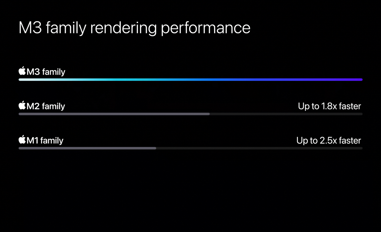 Oltre a questo i processori sfruttano altre innovazioni come mesh shading e e il ray tracing accelerato dall’hardware dando modo di portare il rendering a 2,5 volte il livello di quello di M1.