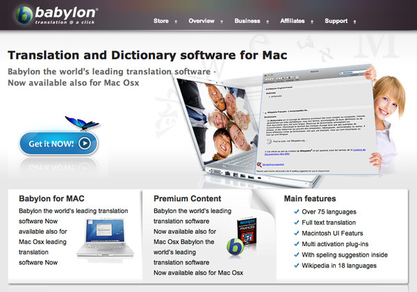 Dopo il successo della prima versione per Mac il programma di traduzione Babylon è ora disponibile con un nuovo importante aggiornamento. Con la nuova versione Babylon 2008 ora anche gli utenti della Mela hanno a disposizione i dizionari in memoria che permettono di lavorare e tradurre anche senza collegamento a Internet, una funzione da tempo presente nel software in versione PC ma che non era stata integrata nella prima edizione di Babylon per Mac. Per quanto riguarda le lingue supportate la nuova versione di Babylon permette di tradurre testo al volo da e verso 33 lingue, contro le 28 della versione precedente.