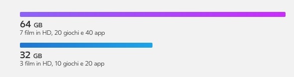 La versione base in vendita sul sito ufficiale di Oculus a 219 dollari del dispositivo include 32 GB di spazio di archiviazione, mentre la versione da 64 GB di spazio costa 269 euro. La scelta ovviamente dipende dalla quantità e dal tipo di contenuti che un utente vuole ospitare ed è il sito stesso a guidare l’utente sulla differenti potenzialità in termini di capacità dei due modelli.