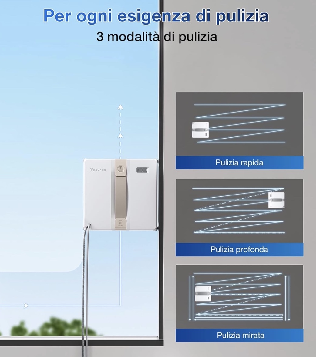 Lo abbiamo visto all’opera all’evento di presentazione di Febbraio di Ecovacs ed è stata una piccola rivelazione per chi, avendo vetrate di una buona dimensioni e difficili o scomode da raggiungere vuole semplificare e velocizzare il lavoro di pulizia nella massima sicurezza.