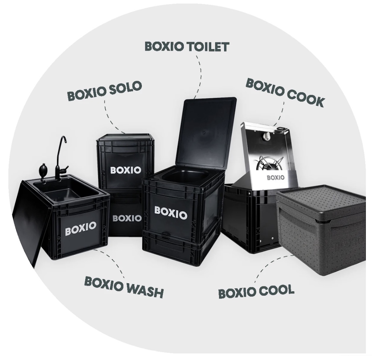 BOXIO è una gamma di soluzioni compatte, modulari e sostenibili. Tutto ruota attorno a praticità, portabilità e zero sprechi. Il più famoso è sicuramente il WC portatile a separazione secca: un piccolo “bagno” che non richiede acqua né sostanze chimiche e che ti permette di separare liquidi e solidi per uno smaltimento facile, senza odori sgradevoli. È perfetto per chi fa campeggio, ma anche per chi ha una casetta in montagna o in giardino.