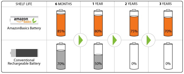 Le batterie Amazon sono in grado di tenere una carica del 70% anche dopo tre anni dalla loro ricarica, questo quando una ricaricabile tradizionale di quelle che si comprano a basso prezzo (certo più alto di quello offerto oggi da Amazon con lo sconto) arriva, ottimisticamente, al 50% dopo solo un anno. La capacità di conservare la carica le rende il prodotto ideale per dispositivi che consumano relativamente poco come mouse e, soprattutto tastiere. Questo tipo di accessori, lo sa bene chi spesso si trova con batterie scariche molto rapidamente, con energia consumata più dalla distanza intercorsa dalla precedente ricarica che dal vero e proprio consumo.