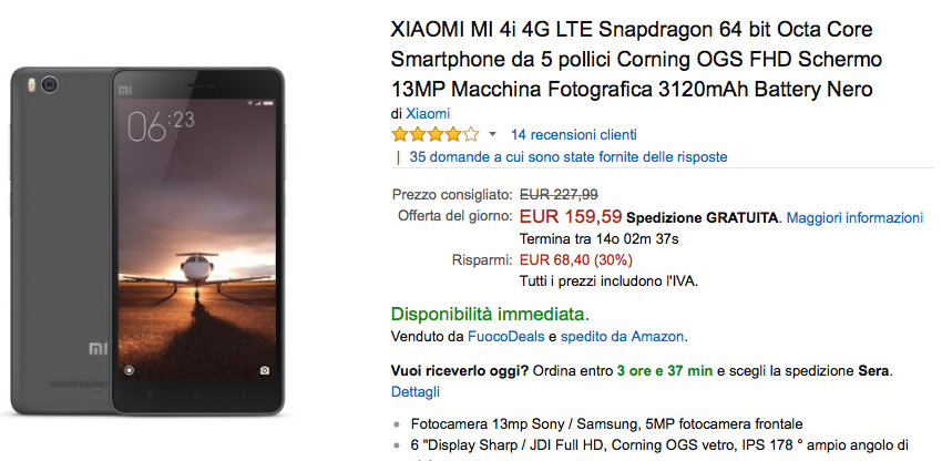 Come anticipato, Xiaomi Mi4i è disponibile per poche ore, solo fino a mezzanotte (scorte permettendo) su Amazon a 159,59 euro; assolutamente da acquistare per chi è alla ricerca di uno smartphone con caratteristiche di spicco ad un prezzo particolarmente basso. Dopo la mezzanotte il prezzo di listino sarà di 227 euro, o superiore.