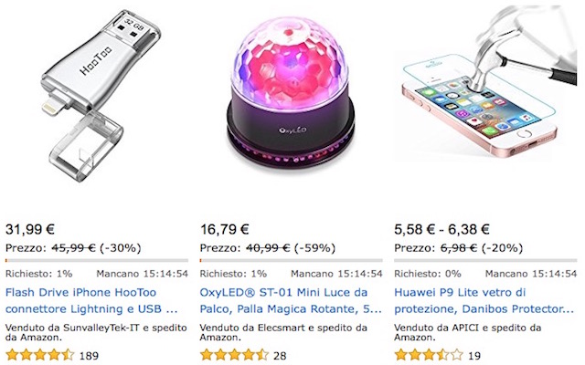 N.B. Le offerte Flash sono a tempo limitato e in quantità limitate. Quindi anche se avete la possibilità di comprare fino a mezzanotte, non è detto che i prodotti siano realmente disponibili fino a quell’ora perché le scorte potrebbero essere terminate