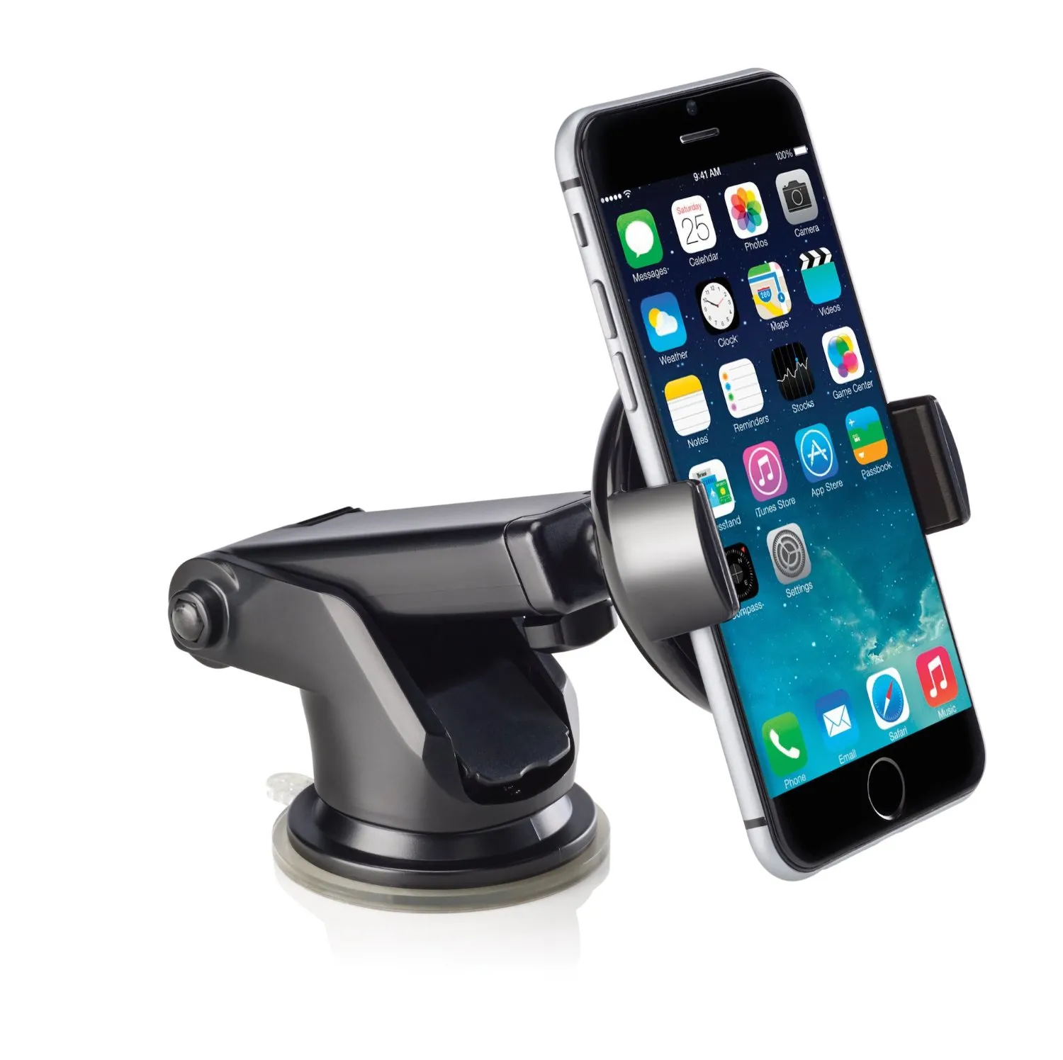 La promozione vi permette di avere un prodotto unico. In primo luogo ha un braccio estensibile; questo, come spieghiamo nel nostro test, consente di posizionarlo in maniera molto flessibile sull’automobile. In aggiunta a questo ha un sistema di aggancio molto comodo: il dispositivo aggancia e sgancia il cellulare (è compatibile praticamente con tutti quelli i commercio) lasciandoci usare una sola mano. Infine ha una ventosa incredibilmente potente, tanto potente che è in grado di restare fissata su superfici impossibili per i comuni tipi di ventosa, tra cui anche la maggior parte dei cruscotti: basta trovare una superficie ragionevolmente piatta.