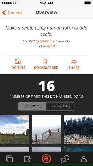 Allo stesso modo può essere però difficile trovare nuove idee e stimoli per tenere attivo il proprio occhio e capita sperso di trovarsi in crisi, avendo difficoltà espressiva o faticando a trovare nuove tematiche fotografiche. OKDOTHIS vuole essere un network di ispirazione: basta connettersi alla app e scoprire le tipologie fotografiche che stanno utilizzando gli altri utenti, ispirazioni create e postate direttamente da loro.