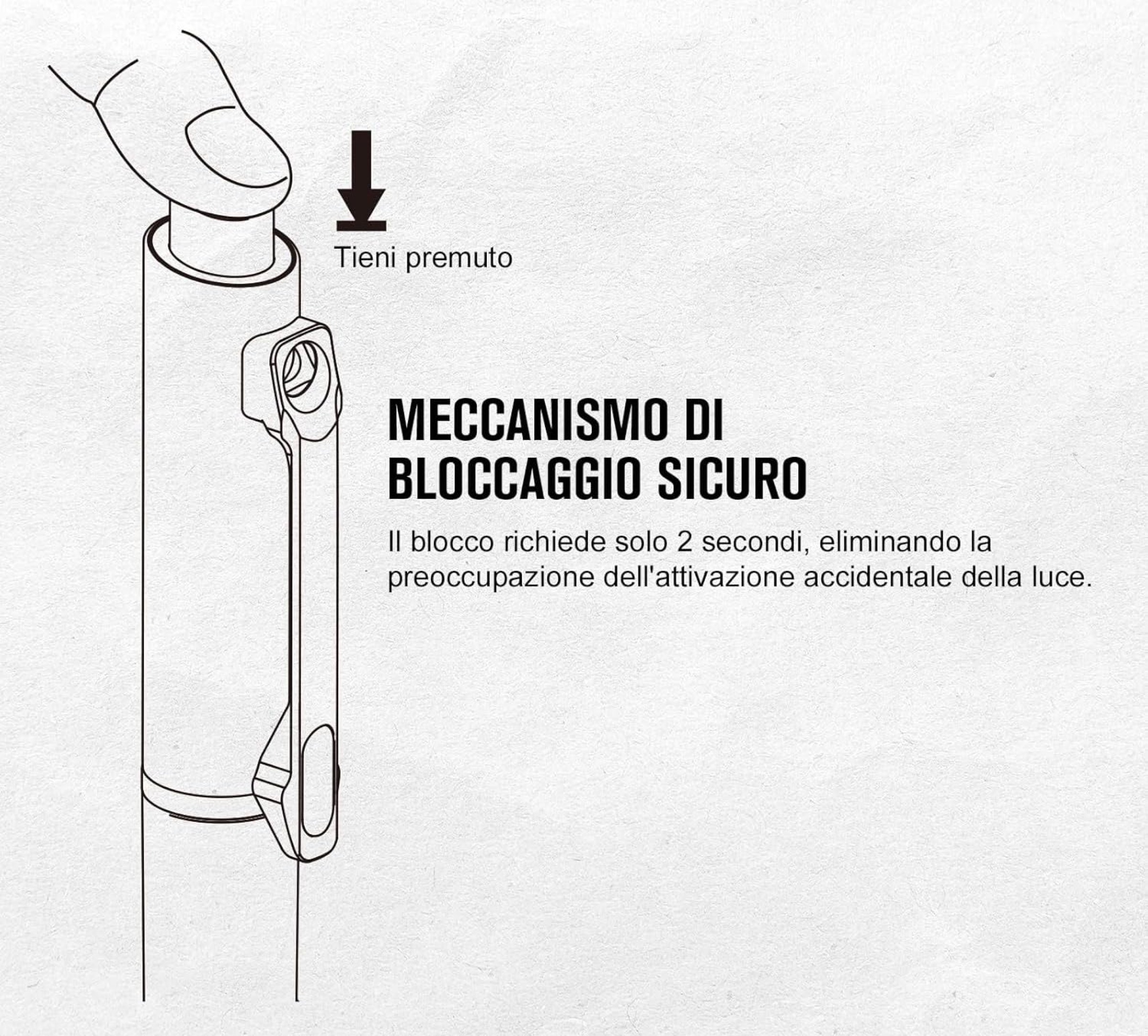 Per finire segnaliamo la presenza di una funzione di blocco per evitare accensioni involontarie quando si trasporta la penna in tasca o nello zaino.