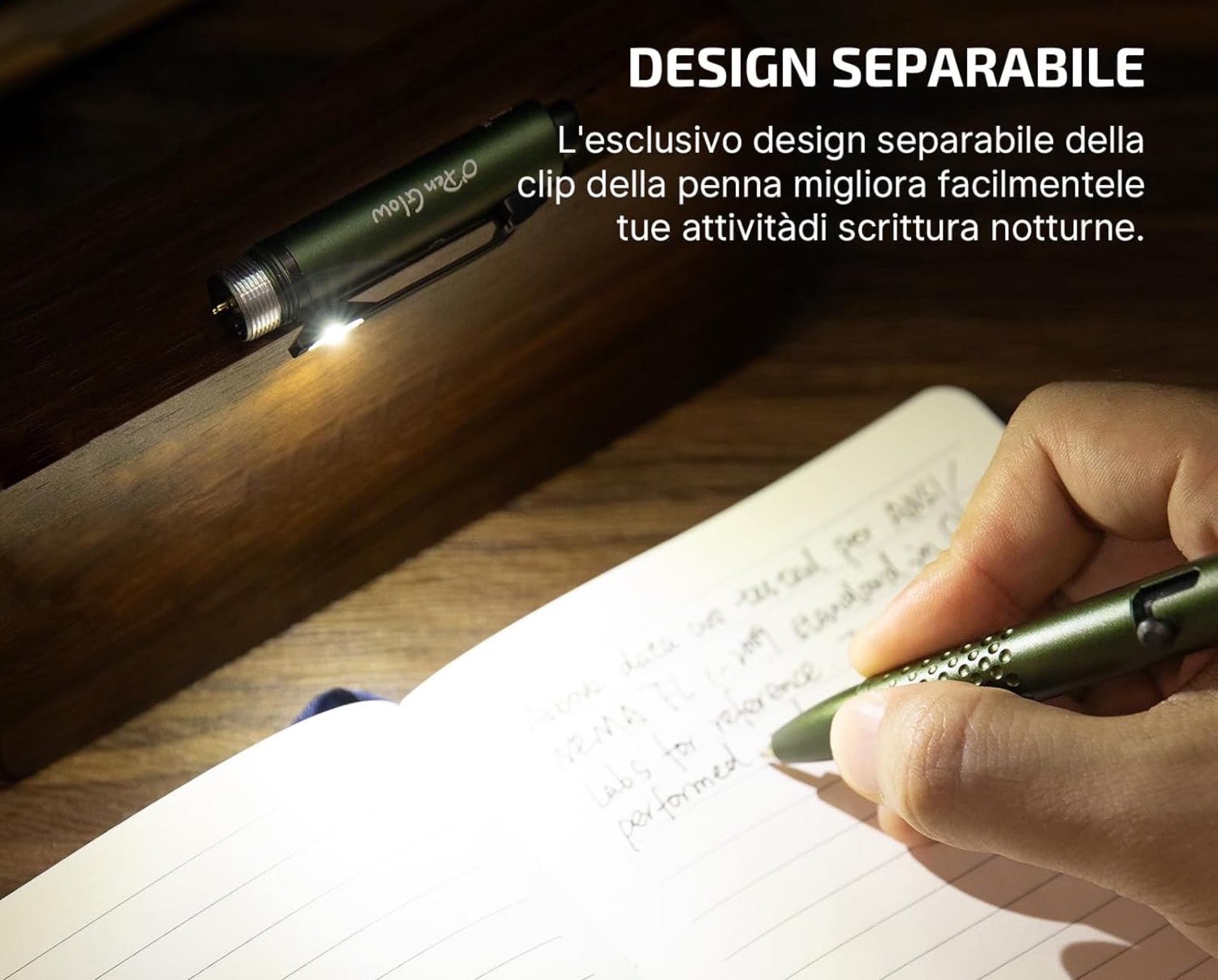 Scrive, illumina, punta: OLIGHT O’Pen Glow non è una semplice penna ma uno strumento multifunzione che incorpora quattro funzioni in un unico prodotto tra scrittura anche al buio, torcia LED e puntatore laser.