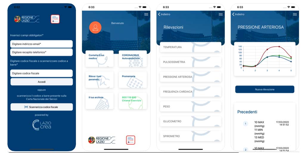La Regione Lazio ha lanciato un’app che si chiama LAZIODRCOVID (Lazio Doctor Covid, qui per iPhone; qui per Android) e si rivolge: a tutti i cittadini che vogliono entrare in contatto con il proprio medico di famiglia da remoto, a chi manifesta sintomi legati al Covid19 (febbre, tosse, bruciore agli occhi), a chi è entrato in contatto stretto con persone positive al Covid19, a chi è stato sottoposto a misure di sorveglianza attiva da parte della Asl. Non è un servizio di emergenza e non sostituisce il servizio del Numero Unico delle Emergenze 112 o 118 che deve essere attivato da parte del cittadino in caso di emergenza sanitaria. La Regione spiega che dati inseriti nella app verranno rielaborati dal sistema, e saranno messi a disposizione degli operatori sanitari.