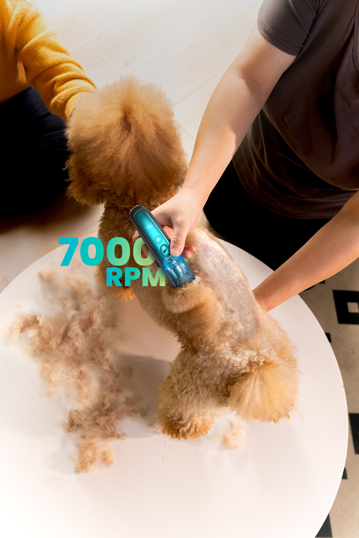 Innanzitutto è dotato di un motore veloce (7.000 RPM), ma silenzioso per non infastidire, stressare e fare scappare gli animali più timorosi. Il costruttore dichiara una rumorosità inferiore ai 55dB, quindi inferiore a una conversazione normale tra due persone che raggiunge i 60dB. Si può usare senza filo sia in casa che all’aperto, grazie alla batteria da 2.000 mAh che permette di rasare fino a tre cani prima di richiedere una ricarica via connettore USB-C.