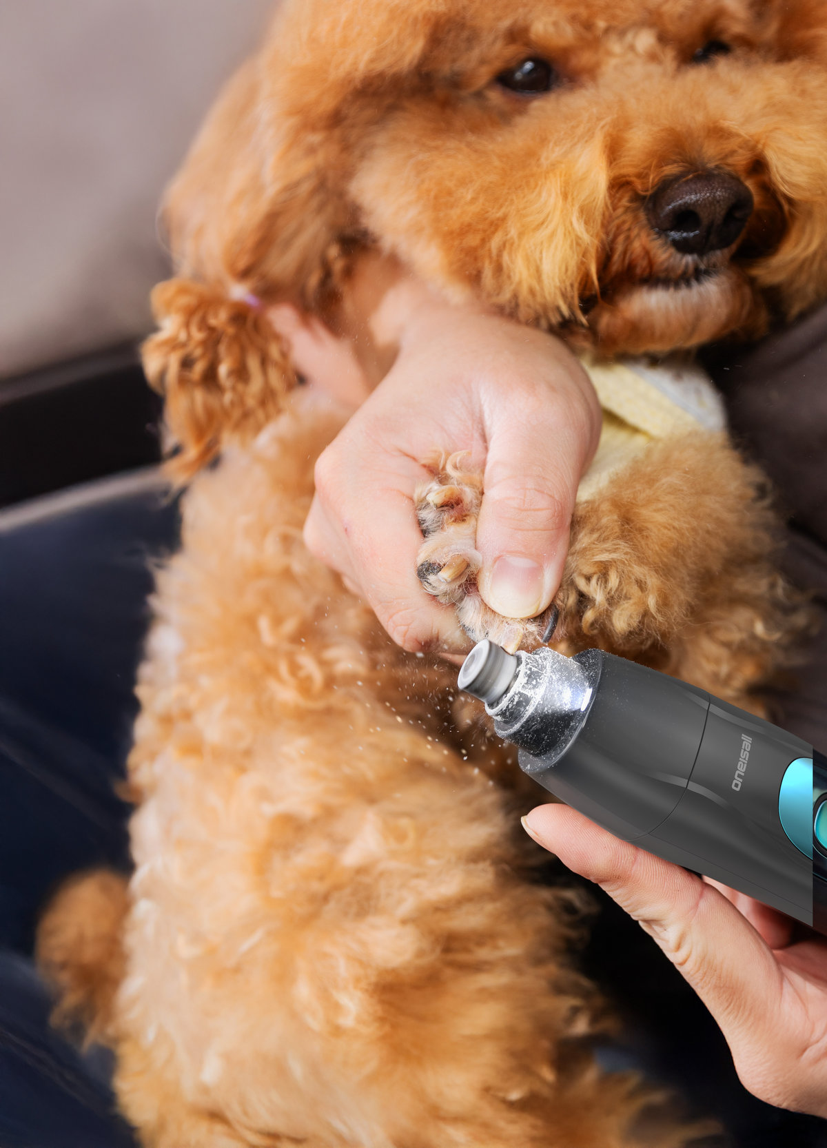 Le specifiche indicano fino a 3,5 ore di utilizzo continuo con una sola carica: un piccolo display integrato nell’impugnatura mostra la percentuale di carica della batteria e lo stato della ricarica. Compatto e leggero Oneisall FC10 è progettato per essere impugnato agevolmente anche durante le sessioni di toelettatura più lunghe.