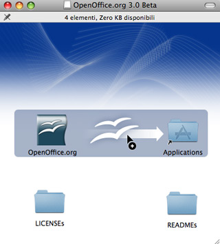 La versione beta di OpenOffice.org 3.0 release candidate è scaricabile da questa pagina: si tratta di un file di 175 MB. I requisiti di sistema prevedono Mac OS X 10.4 Tiger o superiori, 500 MB di spazio su disco, 800 MB per la versione multi lingua.