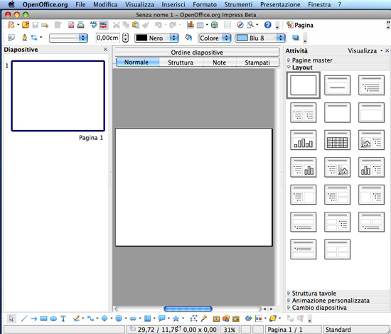 Finalmente OpenOffice.org supporta Mac OS X ed è in grado di funzionare senza dover ricorrere al sistema grafico X11, efficiente ma dalla grafica datata. Da poche ore sui server OpenOffice.org è possibile scaricare la versione denominata 3.0 Beta 2 RC 1. Sorprende per ricchezza e dettagli il lungo elenco delle novità integrate che può essere consultato nella versione completa in questa pagina Web.