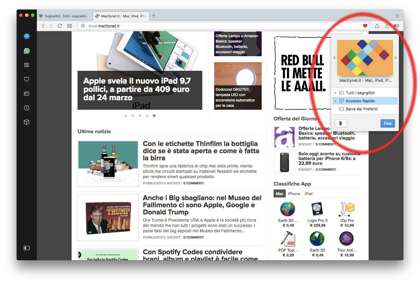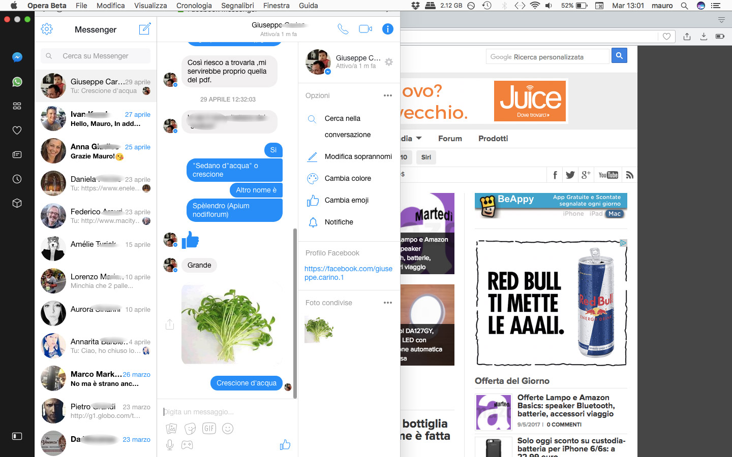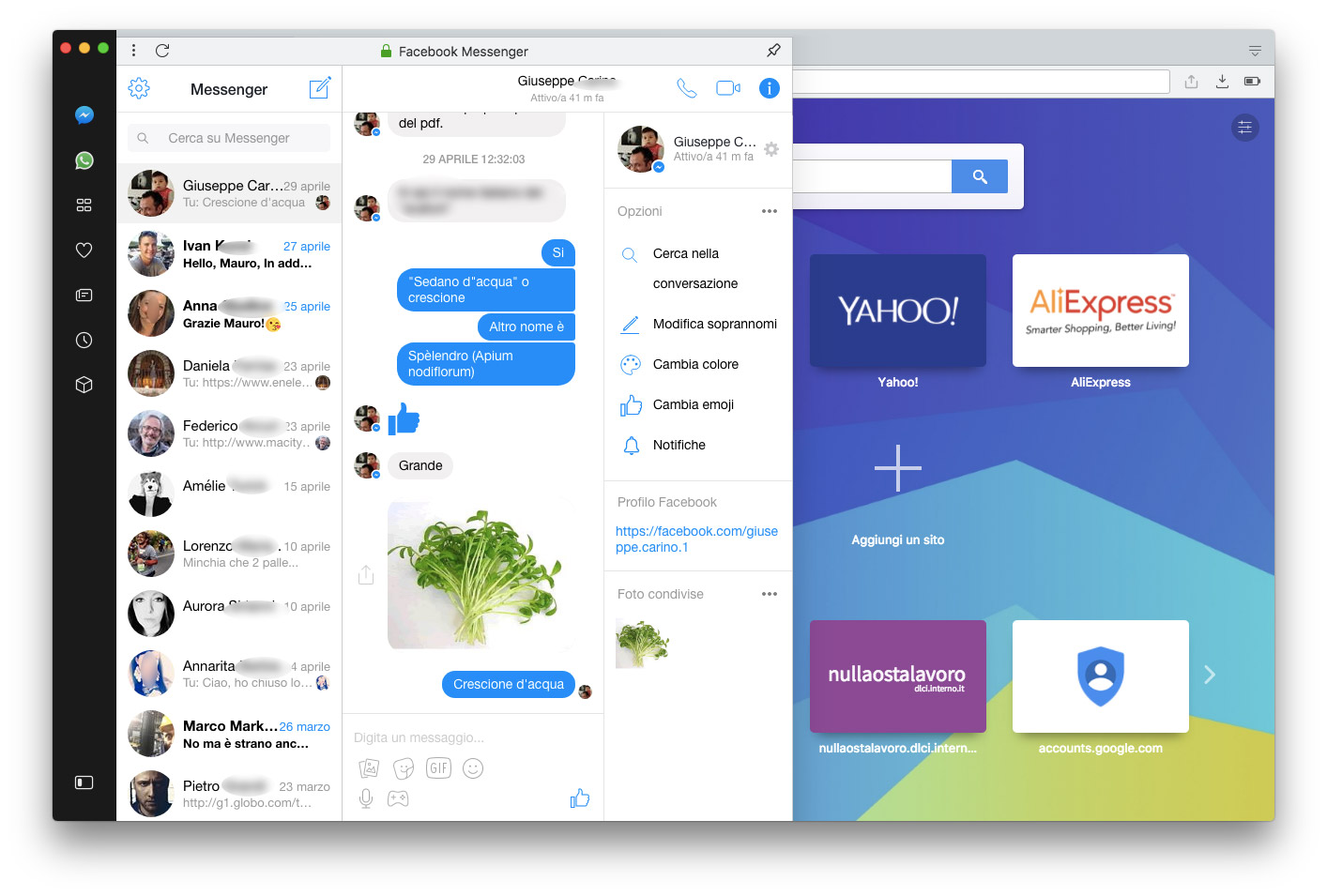 Il cambiamento più evidente è la presenza di una barra laterale dalla quale richiamare immediatamente segnalibri, le notizie personalizzate, la cronologia, le estensioni ma anche app di messaggistica come Messenger, WhatsApp e Telegram; quest’ultima è una funzionalità utile per chi lavora con questi sistemi, permettendo di comunicare con i propri contatti senza lasciare il browser. La prima volta che si seleziona uno di questi servizi si deve autorizzare l’accesso; il riquadro laterale può essere ancorato in modo permanente e sbloccato al volo premendo un piccolo pulsante in basso a sinistra. Selezionando la voce “Preferenze” del menu “Opera” è possibile scegliere la sezione “Di base” e da qui “Gestisci barra laterale” per personalizzare gli elementi che devono comparire.