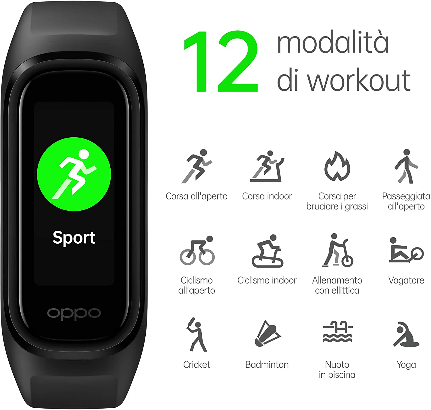 Se si vuole usare l’accessorio per lo sport, sono a disposizione 12 modalità di allenamento tra cui corsa, camminata, ciclismo, nuoto, badminton, cricket e yoga, registrando così i dati degli allenamenti in maniera intelligente: grazie all’app HeyTap Health gli utenti possono poi controllare i loro progressi.