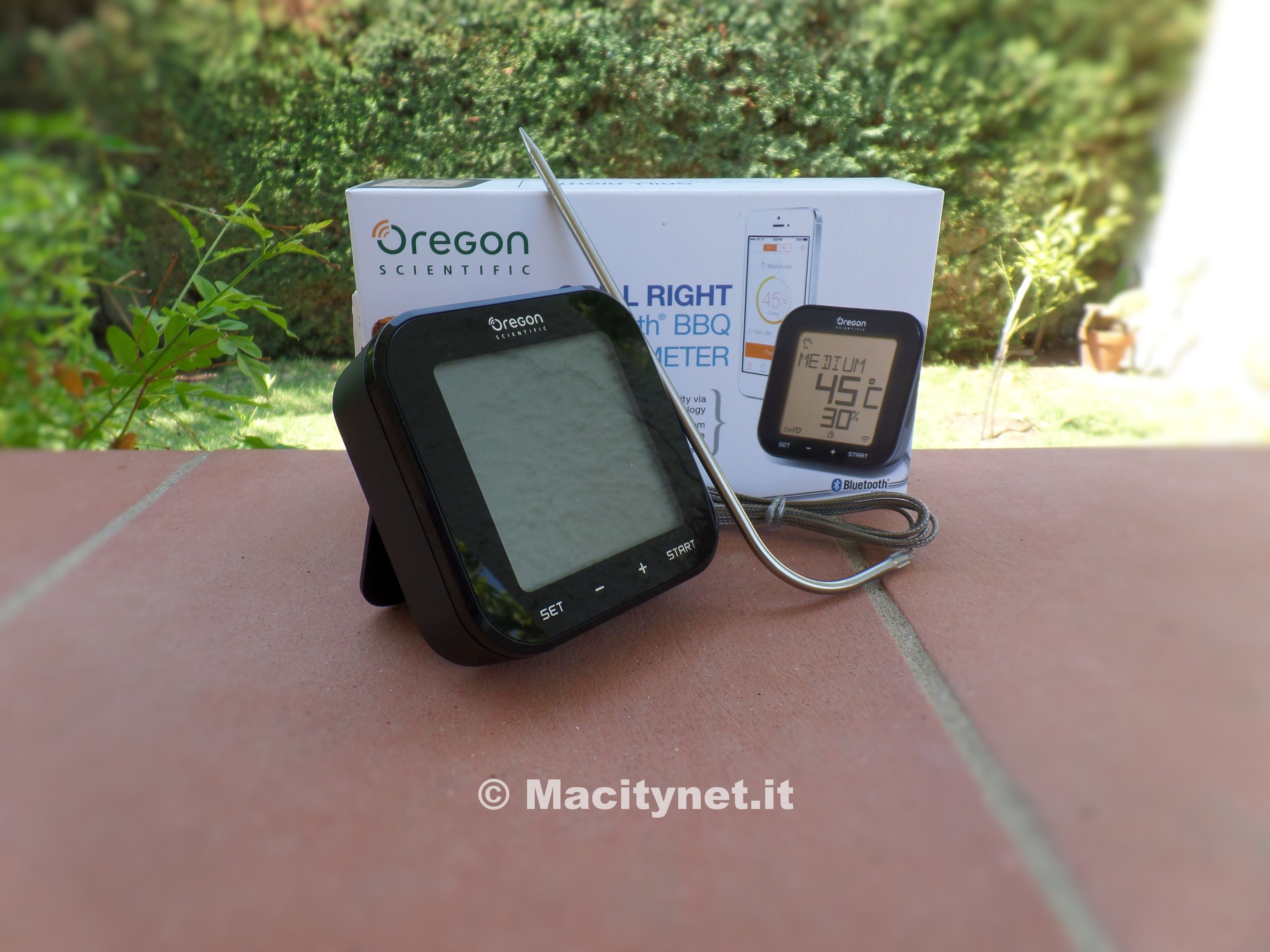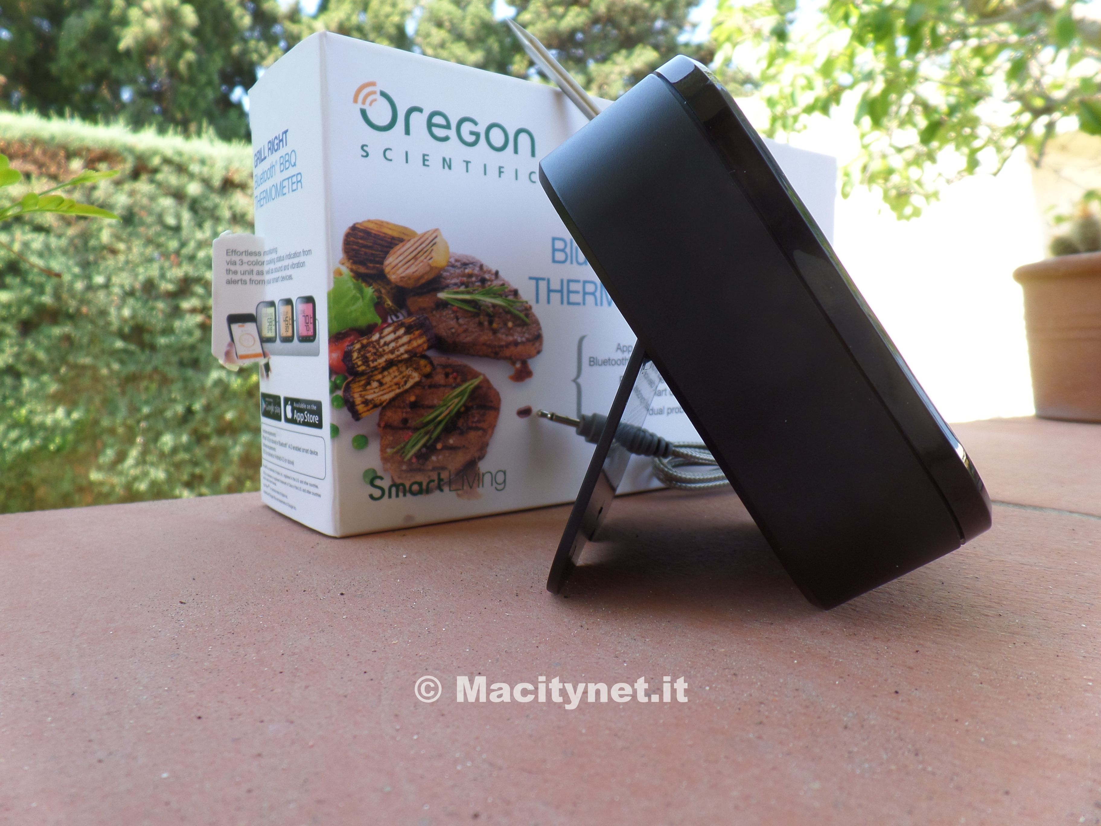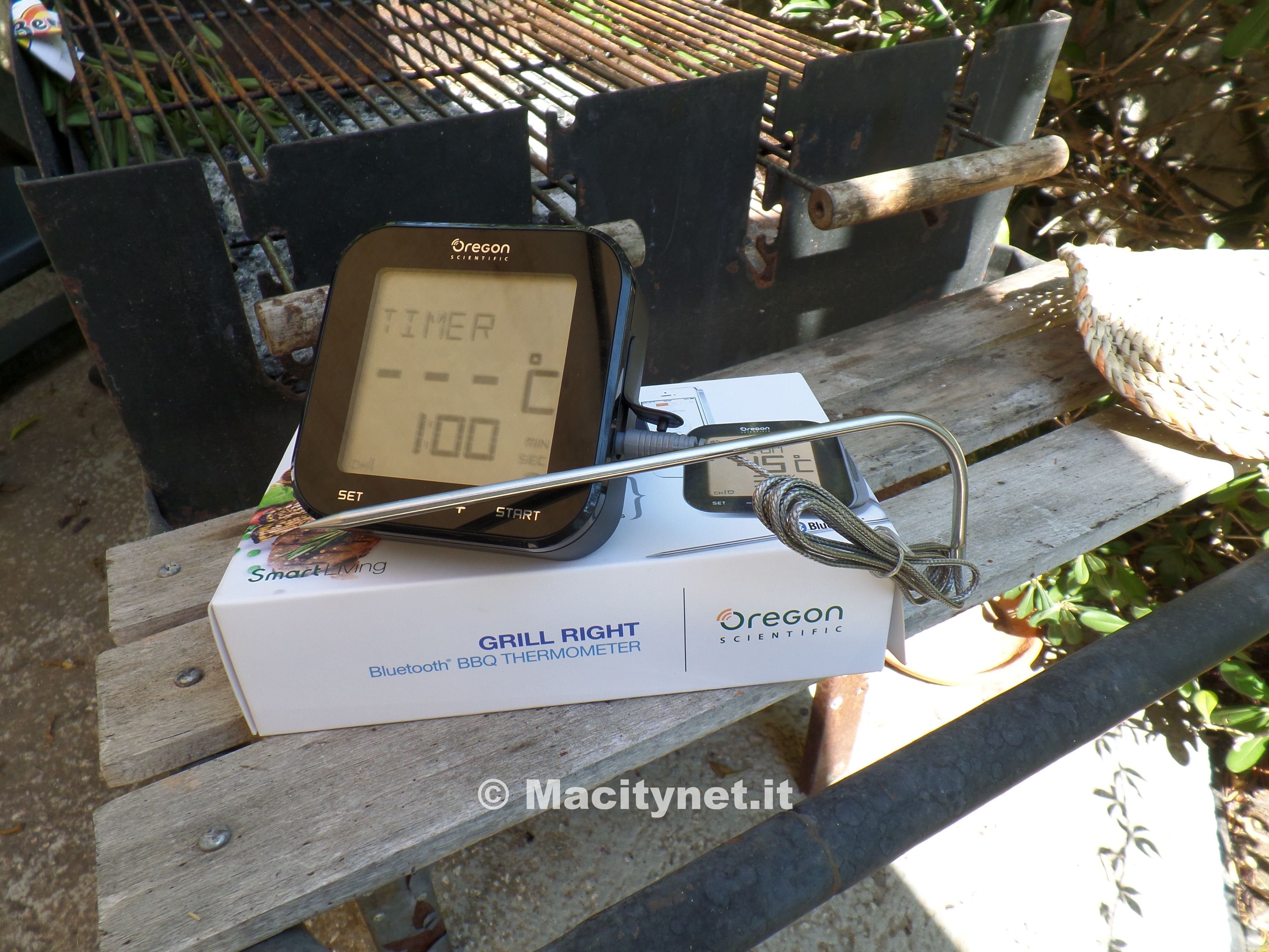 Non si contano ormai più gli accessori compatibili con iPhone e iPad che permettono di compiere le attività più disparate: spazzolini da denti, pentole a pressione, braccialetti per il fitness, stazioni meteo e adesso anche termometri per il cibo. Oregon Scientific AW133 è una piccola stazione che aiuta nella cottura dei cibi ed in particolare nella cottura della carne. E’ un accessorio sicuramente di nicchia, non destinato a raggiungere la stessa quantità di pubblico delle stazioni meteo dello stesso produttore, ma che permette di fare il barbecue in modo originale, divertente e sicuro. Scopo del piccolo termometro è quello di non bruciare la carne e cuocerla al punto giusto. La particolarità di questo termometro per cibi Oregon consiste nella connettività bluetooth, che permette di accoppiare l’accessorio ad iPhone o anche a un dispositivo Android. Insomma, da oggi il barbecue si controlla a distanza con uno smartphone. < strong>Confezione di vendita