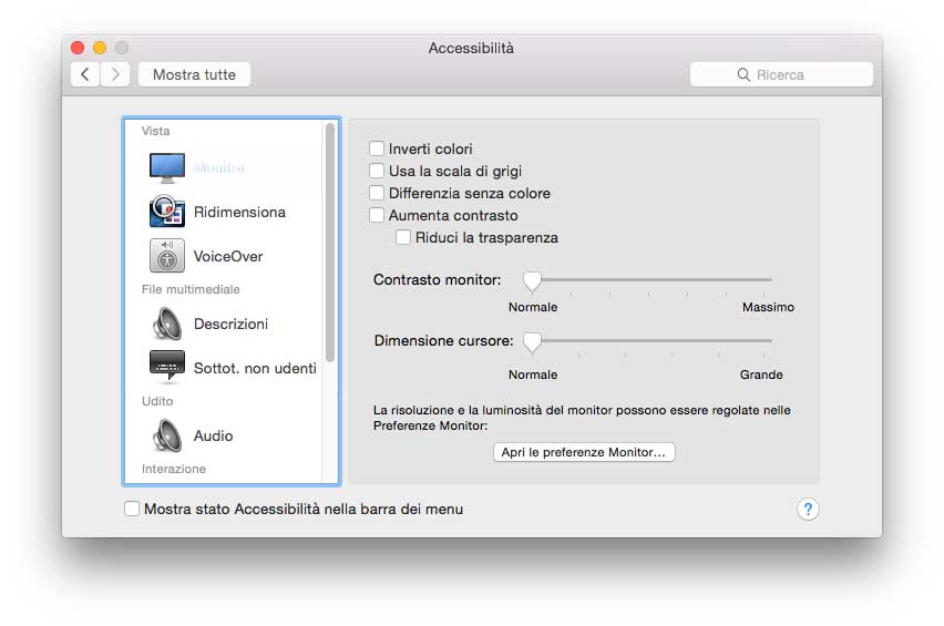 Nuove Preferenze nella sezione “Accessibilità”