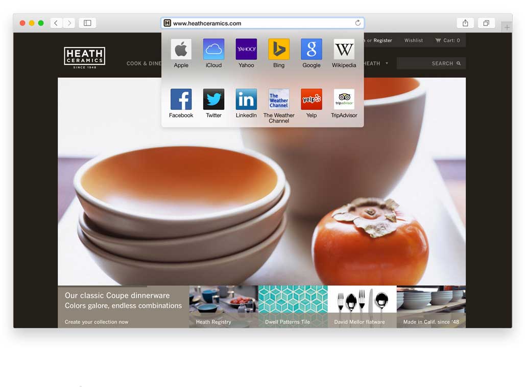 Safari. Il browser di Apple è stato rinnovato. Una nuova vista Preferiti consente di accedere rapidamente ai siti web preferiti; la vista Tab mostra le miniature di tutte le pagine web aperte in un’unica finestra. La nuova versione del browser offre anche un maggiore controllo sulla privacy, con finestre separate di Navigazione Privata e il supporto integrato per DuckDuckGo, un motore di ricerca che non traccia gli utent