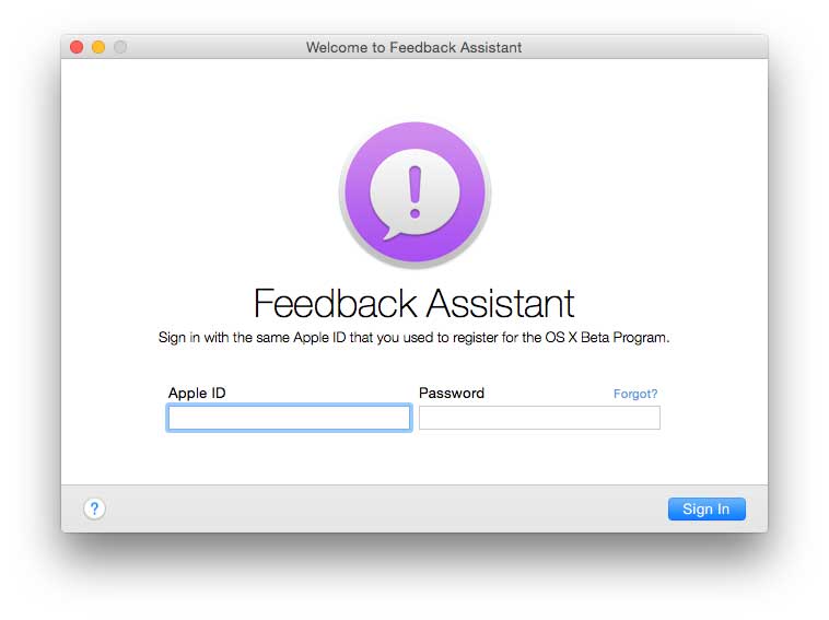 Feedback Assistant è una utility per segnalare la presenza di errori nella beta di OS X 10.10 Yosemite