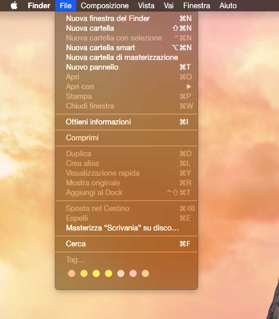 Esempio menu del Finder impostando con la modalità “Dark”
