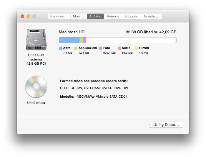È ancora possibile richiamare il System Profiler (il “Resoconto di sistema”, in italiano) ma le informazioni più importanti sono a portata di mano dalla nuova finestra.