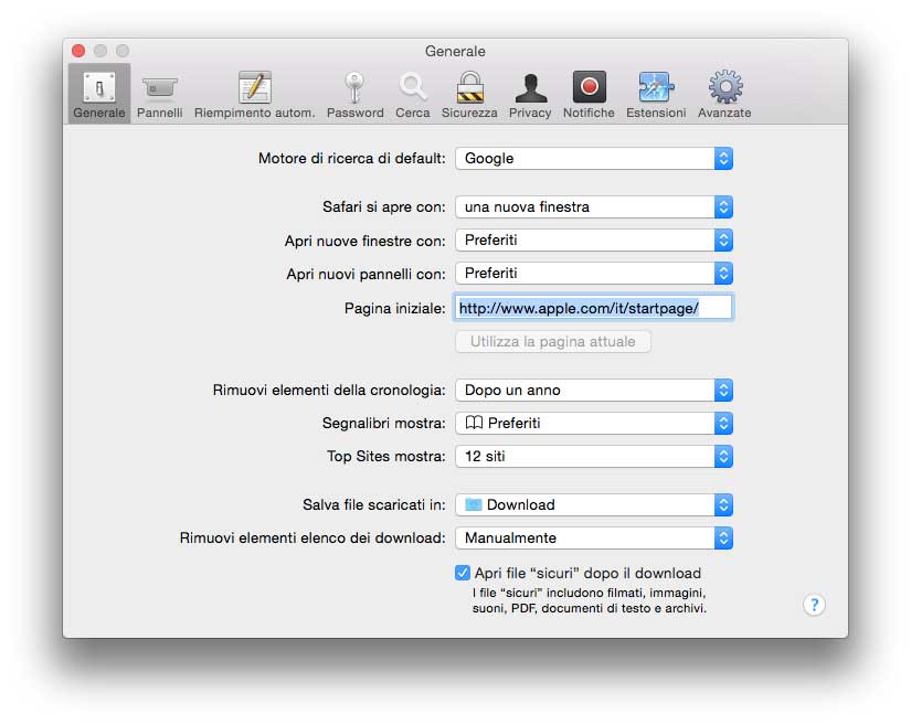 Dal menu “Safari” scompaiono le voci “Navigazione privata” e “Ripristina Safari”. La navigazione privata si attiva dal menu File selezionando “Nuova finestra privata”: il meccanismo è migliore rispetto a prima, giacché con questo metodo non è obbligatorio attivare la navigazione privata per tutte le schede aperte. Quando si attiva questa modalità la barra di ricerca o inserimento URL cambia colore permettendo di capire subito che stiamo lavorando con la navigazione privata abilitata. Con questa modalità, lo ricordiamo, Safari mantiene privata la cronologia di navigazione per tutti i pannelli della finestra, non memorizza le pagine visitate, la cronologia e altre informazioni.