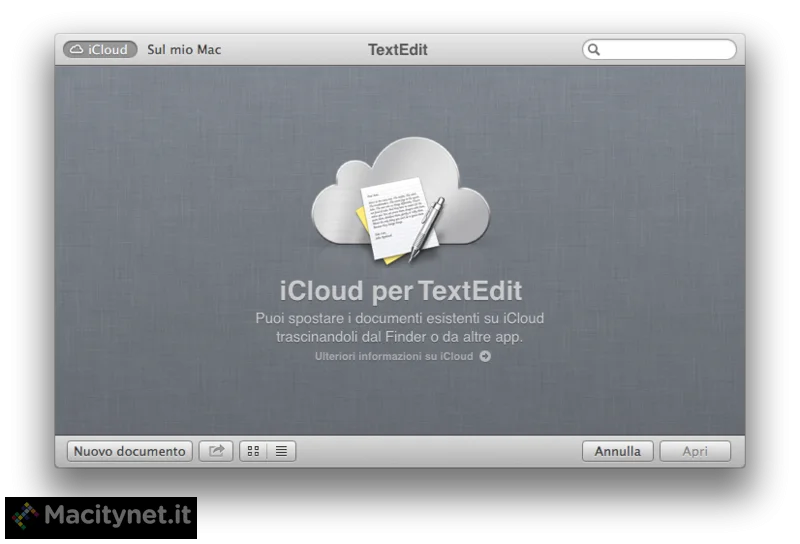 Con Mountain Lion, iCloud è integrato nelle fondamenta stesse di OS X, ed è ancora più facile tenere tutti i contenuti sincronizzati su tutti i propri dispositivi. L’integrazione si nota, ad esempio, in TextEdit: aprendo è possibile scegliere l’opzione per la creazione di un nuovo documento sul cloud o sul disco locale del Mac. Questa funzionalità è molto probabile venga integrata nelle future versioni di Pages, Keynote e Numbers e consentire di accedere e lavorare in qualunque momento sui documenti e con qualunque dispositivo (Mac, iPhone, iPod touch, iPad), anche in movimento. Dal menu “File” di TextEdit è possibile selezionare la voce “Sposta in…” e in qualunque momento spostare un documento memorizzato sui dischi locali, sul cloud.