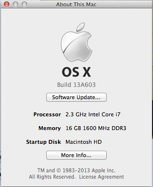 Il sito 9to5Mac afferma che una nuova golden master di OS X 10.9 Mavericks è stata distribuita a sviluppatori e beta tester. La build precedente numerata 13A598 non è più dunque la versione che sarà rilasciata come definitiva ma questa sarà la build 13A603.
