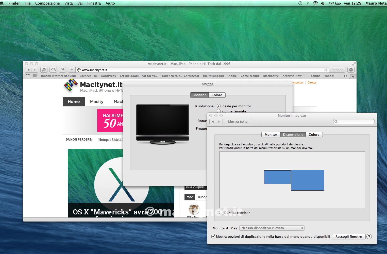 Con OS X 10.9 Mavericks, Apple ha finalmente fatto dei passi avanti, ottimizzando il supporto per display multipli per gli utenti professionali, permettendo l’esecuzione di applicazioni in full-screen sui monitor secondari e non solo su quello principale.