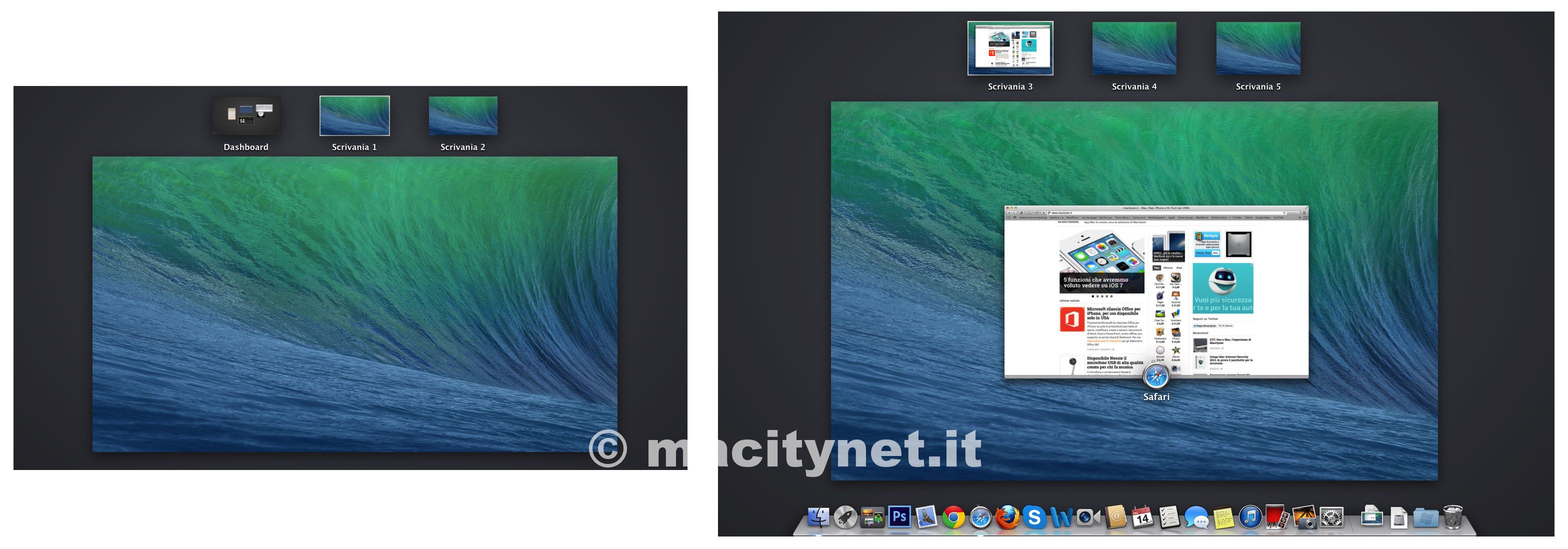 Continua la nostra esplorazione del nuovo sistema operativo di Apple. Tra le 200 novità del sistema operativo con l’appellativo californiano, la migliore gestione degli schermi multipli. OS X 10.7.x Lion e OS X 10.8.x Mountain Lion non consentono di avviare contemporaneamente più applicazioni a tutto schermo. La questione è annosa: sia Lion, sia Mountain Lion supportano a livello di sistema la possibilità di vedere le applicazioni in modalità a tutto schermo sfruttando ogni pixel del display: è possibile tenere aperte più applicazioni a tutto schermo contemporaneamente, insieme a finestre di dimensioni standard e passare dal full-screen alla Scrivania facendo click in alto a destra sull’icona dedicata nella finestra delle applicazioni ottimizzate per la modalità a tutto schermo.