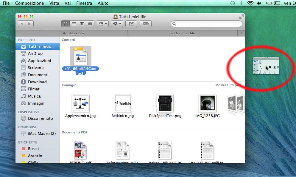 I pannelli del Finder riducono il disordine sulla Scrivania permette di riunire finestre multiple in un’unica finestra con più tab. Si può personalizzare la vista per ogni tab, spostare i file da un tab all’altro e anche lanciare il Finder con più tab aperte a schermo intero. Da qualunque finestra nel Finder possiamo scegliere dal menu” File” la voce “Nuovo pannello” e aprire quanti pannelli vogliamo; è ovviamente possibile chiudere i pannelli, spostarli e impostare visualizzazioni diverse per ogni pannello. Sono state ovviamente previste scorciatoie di tastiera (CMD-T per aprire un nuovo pannello, CMD-W per chiuderli, CMD-Maiusc-W per chiudere la finestra).