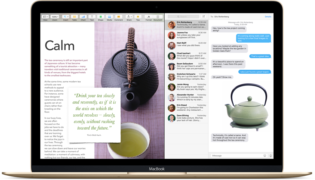 Il font di sistema è stato cambiato e ora è San Francisco, carattere a detta di Apple più leggibile e “stupendo” su display Retina. Mission Control, il sistema che mostra una visuale complessiva della scrivania per permettendo di passare alla visualizzazione di app e spazi, è stato rivisto: quando la Scrivania è affollata, basta trascinare una finestra nella parte superiore dello schermo per accedere alla nuova Spaces Bar in Mission Control e creare un nuovo Spazio. La funzionalità “Split View” permette invece di suddividere perfettamente due app a tutto schermo, permettendo di lavorare senza distrazione con le due applicazioni affiancate.