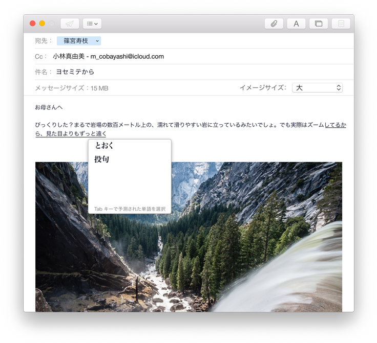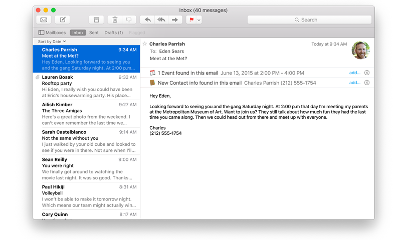 Safari ora integra una funzionalità per il “pinning” dei siti che consente di aprire schede con i preferiti in modo veloce; è presente un pulsante specifico nelle schede che consente di silenziare al volo i siti rumorosi. In Mail è stata integrata “Smart Suggestions”, una funzione che riconosce nome ed eventi nei messaggi permettendo di aggiungerli ai Contatti o al Calendario con un solo click. È anche supportata la gesture con lo swipe per cancellare i messaggi come su iOS e gestire più messaggi in modo semplice quando si attiva la modalità full-screen. In Foto è possibile aggiungere indicazioni sulla geolocalizzazione di una o più immagini, ordinare gli album per data o titolo; sarà anche possibile scaricare dal Mac App Store estensioni per l’editing che si integrano con Foto (es. nuovi  filtri ed effetti).