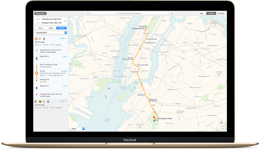 La nuova app Mappe di serie similarmente all’equivalente su iOS 9 include il supporto per i sistemi e gli orari del trasporto pubblico metropolitano e riporta gli ingressi e le uscite della metro, mostrando ogni tappa dell’itinerario. Quando l’utente pianifica un viaggio, Mappe è in grado di proporgli un insieme di spostamenti in treno, metropolitana, autobus e a piedi. Le informazioni sui trasporti in Mappe saranno disponibili in autunno per alcune importanti città, fra cui Baltimora, Berlino, Chicago, Londra, Città del Messico, New York, Filadelfia, San Francisco Bay Area, Toronto e Washington D.C., oltre che per più di 300 città in Cina, fra cui Pechino, Chengdu e Shanghai.