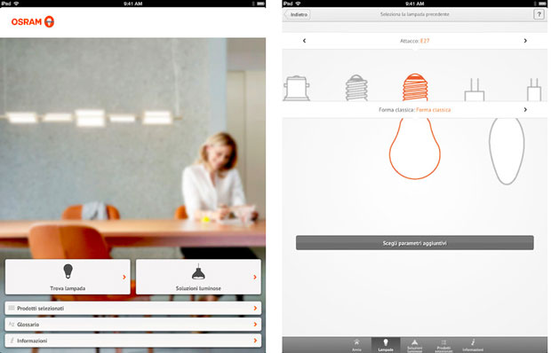 Trovare la lampada che ci serve in casa, in ufficio o in negozio, e provare l’effetto. Ecco che cosa promette Osram Light Finder, una app che ci evita, dice uno dei più grandi produttore di sistemi di illuminazione al mondo, di perdere tempo di fronte a scaffali pieni di lampade, cercando di scegliere il prodotto giusto.