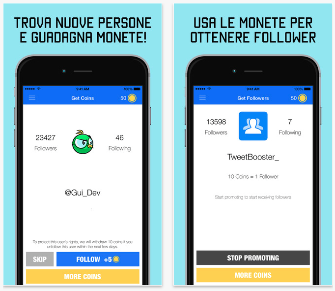 L’uso di TweetBooster è molto semplice: permette di ottenere facilmente nuovi follower su Twitter. L’utente dovrà guadagnare delle monete virtuali seguendo e interagendo con i propri contatti e impegnandosi per ottenere nuovi follower. Maggiore sarà l’utilizzo dell’app, maggiori saranno le possibilità di ottenere follower reali sui social network. Con TweetBooster è possibile visualizzare in modo immediato e semplice quanti sono i follower attuali del proprio profilo e dei profili che si utilizzano e che si vuole promuovere e seguire l’incremento dei contatti in tempo reale.