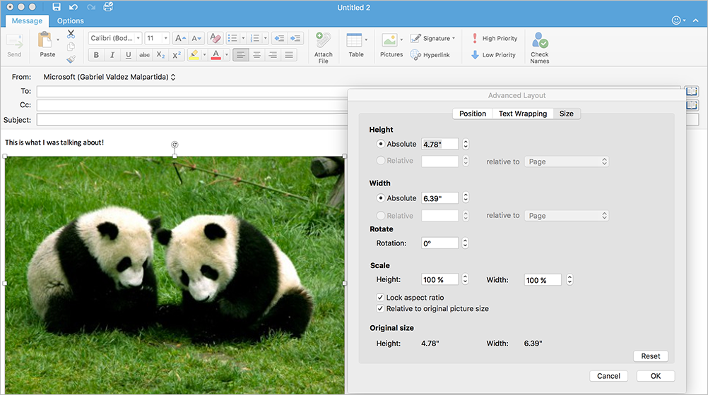 Microsoft annuncia di essere al lavoro a un nuovo editor per le email che sarà integrato a breve in Outlook 2016 per Mac. L’editor in questione supporta funzionalità di formattazione avanzata. Inserendo una immagine in un nuovo messaggio di posta elettronica, appariranno maniglie laterali dalle quali sarà possibile ridimensionare la foto, ruotarla, richiamare una finestra dalla quale impostare funzioni avanzate di layout. Sarà anche possibile modificare altezza e larghezza in modo assoluto o relativo, bloccare proporzioni e altro ancora.