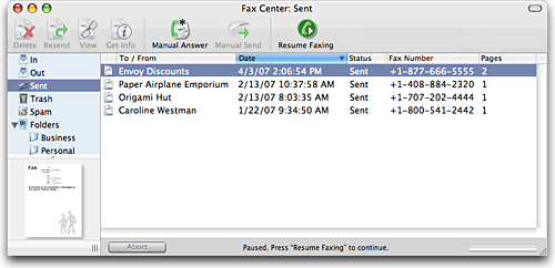 L’applicazione (disponibile in varie lingue, italiano compreso) è enormemente più completa rispetto al software basilare per la ricezione dei fax integrata in Leopard/Tiger. E’ possibile utilizzare il modem interno dei Mac (nei modelli che hanno serie di questo accessorio), modem esterni, cellulari collegati via IRdA, seriale o Bluetooth e “faxare” documenti da qualunque applicazione in grado di stampare. Sul sito del produttore è disponibile una versione demo che permette di rendersi conto delle potenzialità del programma.