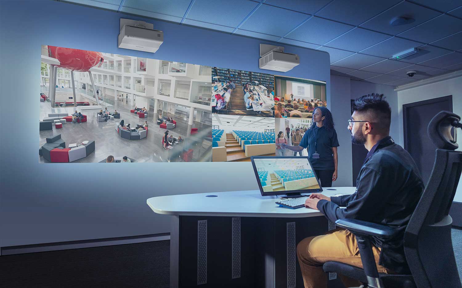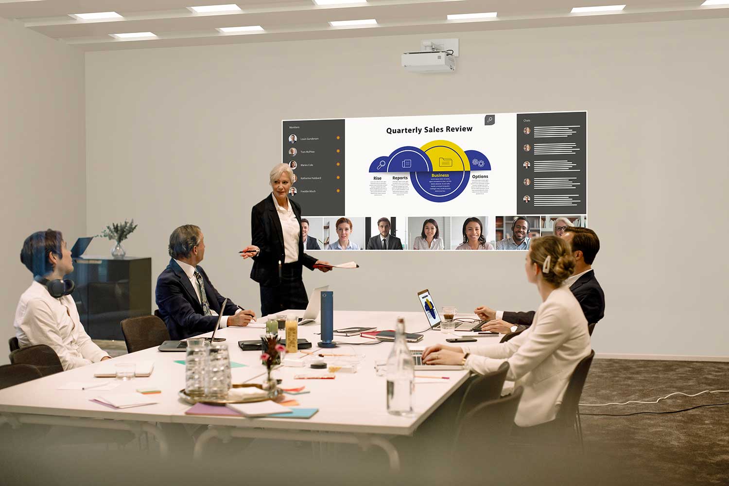 Il proiettore CMZ50 offre immagini da 80 pollici con installazione da circa 1 cm, consentendo ai relatori di lavorare senza preoccuparsi della presenza di ombre sullo schermo o di essere abbagliati dalla luce dell’obiettivo, fornendo ai partecipanti in loco e a coloro che seguono da remoto una visione chiara dei contenuti proiettati.