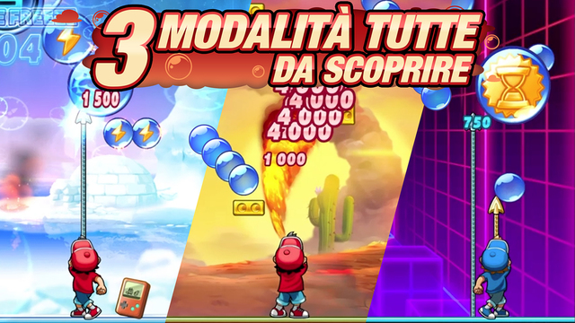 Ancora una volta, naturalmente, il titolo è fedele all’originale, e racconta la storia di due fratelli in missione in giro per il mondo per salvare l’umanità da una minacciosa invasione aliena. Le armi a disposizione del giocatore, ovviamente, sono sempre le stesse, rampini da sparare a schermo verso l’alto per colpire nemici e bolle presente. Naturalmente, non mancano elementi di novità in questa nuova release: Pang Adventures introduce in questo leggendario arcade nuove modalità di gioco e funzionalità, mantenendo intatto lo spirito della serie originale.