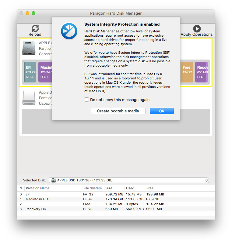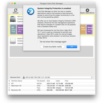 Al primo avvio è necessario installare alcuni componenti aggiuntivi di sistema: basta indicare nome utente, password dell’amministratore, attendere qualche minuto e confermare la volontà di disabilitare la System Integrity Protection (SIP) di OS X 10.11 El Capitan, funzionalità che abilita i privilegi di root per l’esecuzione di alcune operazioni che altrimenti non potrebbero essere eseguite. L’alternativa è la creazione di un disco avviabile con l’utility in questione, un sistema di recovering che permette di eseguire le varie operazioni avviando sistema e programma da un disco esterno.