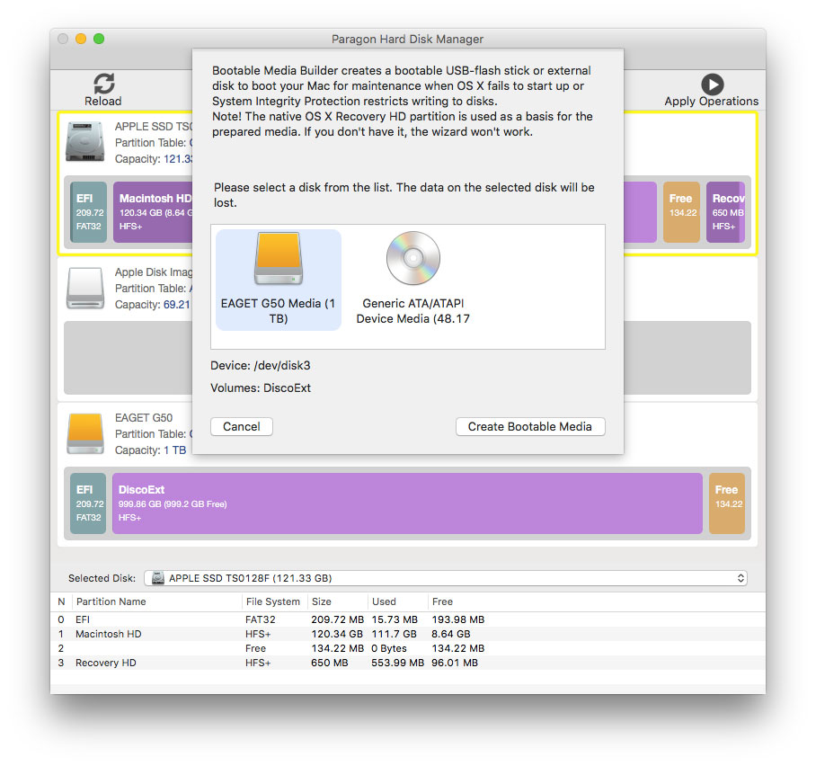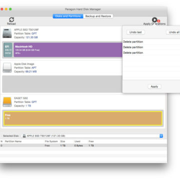 Paragon Hard Disk Manager (HDM) è un software con funzioni che saranno apprezzate dai professionisti, utile per eseguire operazioni avanzate di vario tipo con i dischi. Permette di visualizzare e gestire le partizioni (anche quelle create con Boot Camp), modificare settori, copiare dischi, creare un disco esterno avviabile, ridistribuire lo spazio libero da una partizione all’altra.
