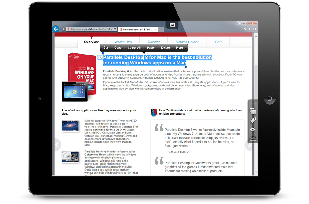 Parallels porta la virtualizzazione al prossimo livello con Parallels Access per iPad, una nuova applicazione distribuita da App Store, il cui scopo è l’uso di applicazioni Windows e Mac sul tablet Apple.