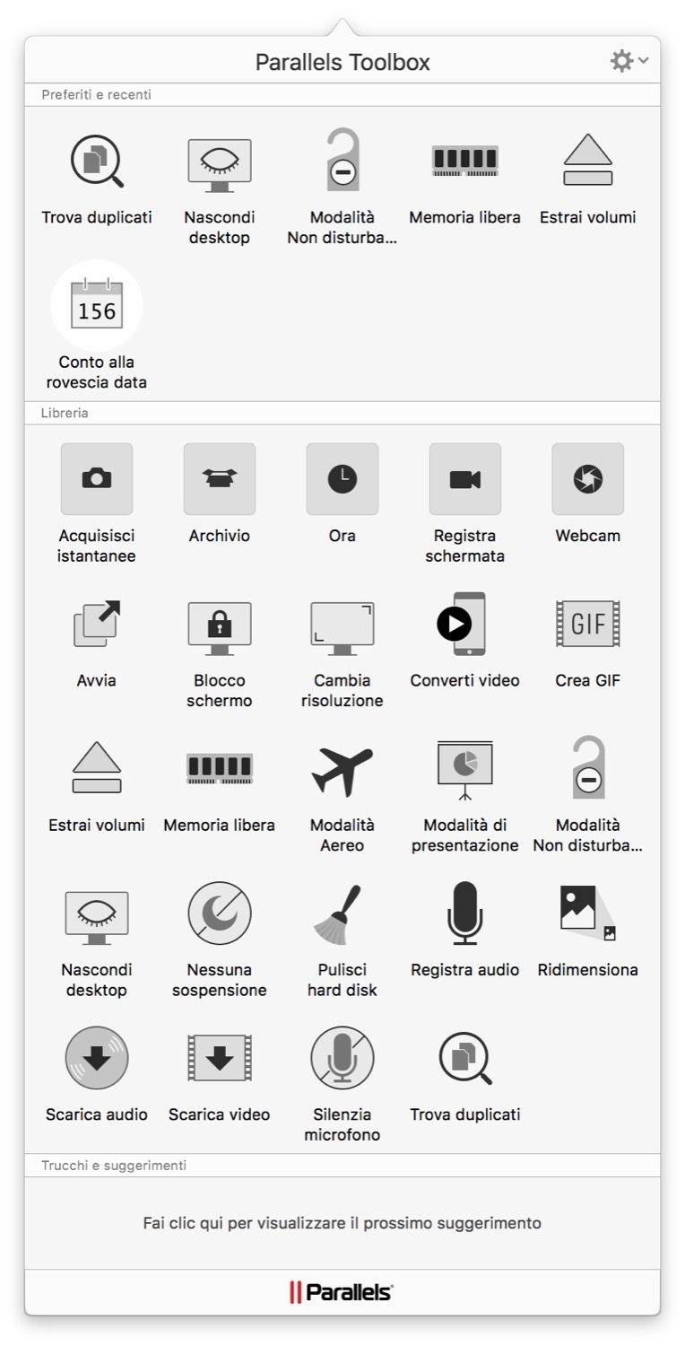 La suite Parallels Toolbox è una serie di strumenti per Mac e Windows che, localizzati all’interno di un comodo comando da menu, apre a una serie di funzioni elementari ma molto comode nella vita di tutti i giorni.