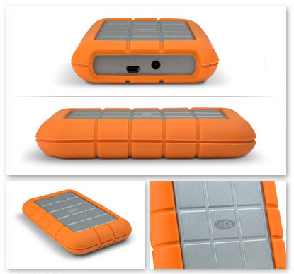 L’unità LaCie Rugged Hard Drive è specificatamente progettata per proteggere i dati dagli urti, dalle ammaccature e da altri danni che potrebbero verificarsi con l’uso quotidiano. Il disco è dotato di una scocca in metallo e una custodia colorata in gomma che la proteggono dalle cadute accidentali, è alimentata dalle porte FireWire o USB e, di conseguenza, non è necessario usare un adattatore di corrente ingombrante e pesante.