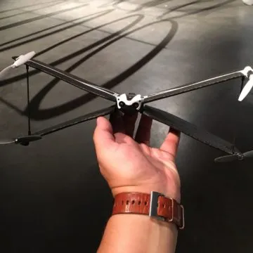 Il drone Swing è anch’esso una evoluzione della precedente serie Airbone, con un sistema di ali del tutto nuovo e molto più grande. Il drone inizia con un volo in modalità elicottero, ma poi può spostare la propria asse e sfruttare le ali come fosse un piccolo aereo. In questa seconda modalità il volo è molto più preciso sulla lunga distanza e, ad una prima impressione, anche più soddisfacente.