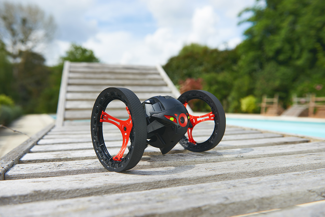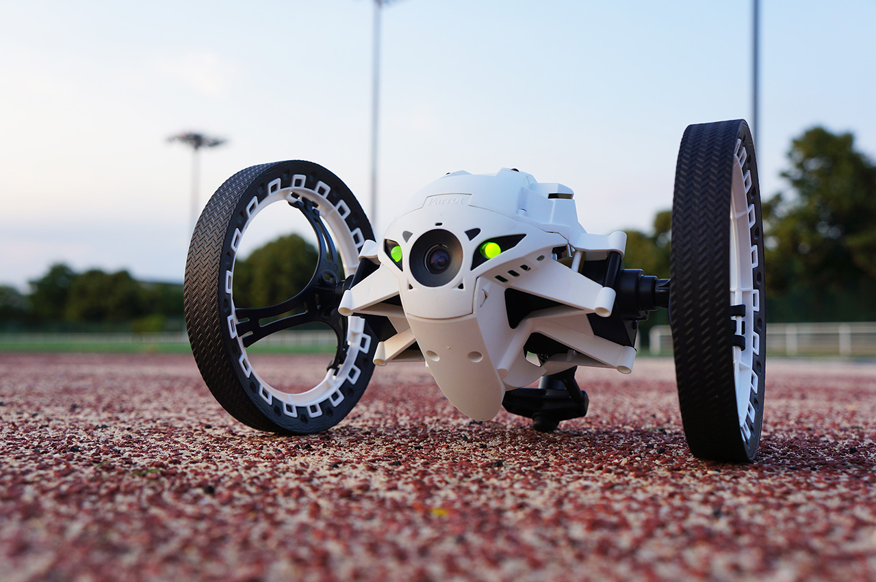 Jumping Sumo è un piccolo drone due ruote dotato di motore elettrico interno, capacità wireless e compatibile con i comandi impartiti da una App (gratuita) disponibile per iOS, Android e Windows Phone. Si tratta di un drone da terra (diversamente dalla maggior parte dei modelli che si vedono nei negozi e sempre di più nei telefilm) ma compensa questo fatto con una incredibile dimestichezza nella guida, una costruzione polivalente e un carattere spigoloso e irriverente.