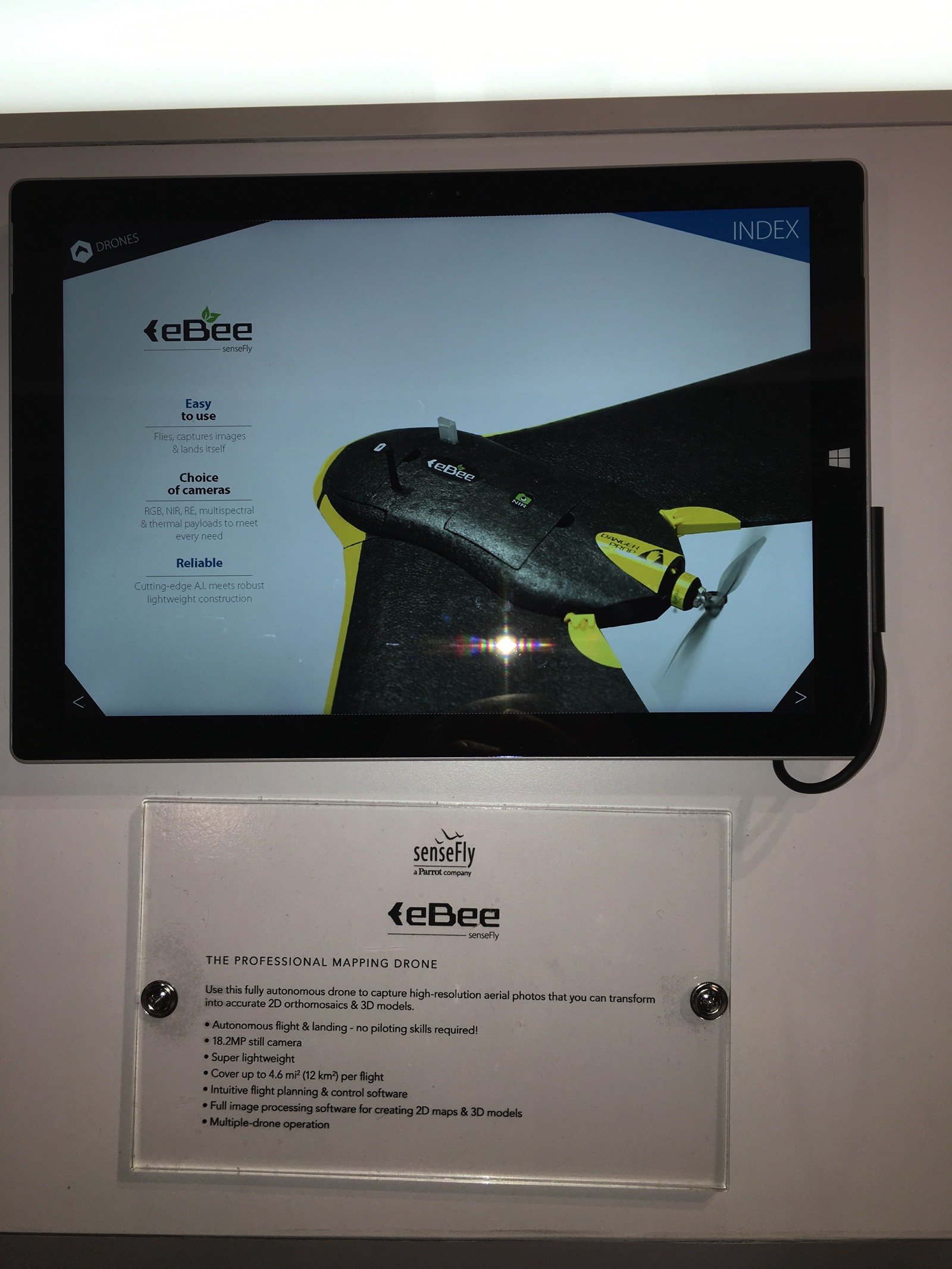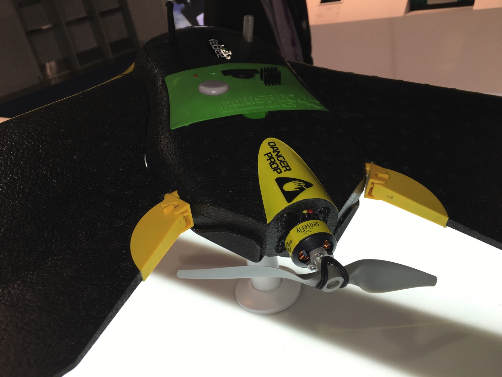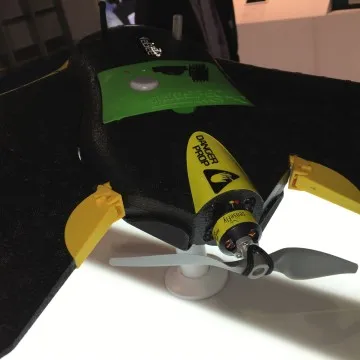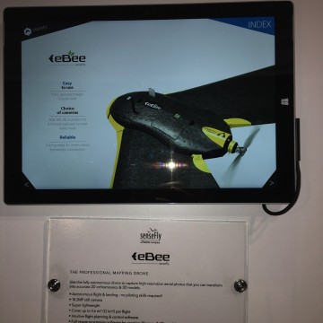 Nelle immagini qui sotto potete vedere il drone eBee fotografato da Macitynet al CES 2016 presso lo stand Parrot.